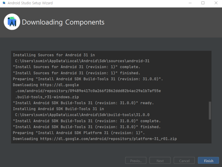 11. Components 다운로드 및 설치 진행 & 설치 완료