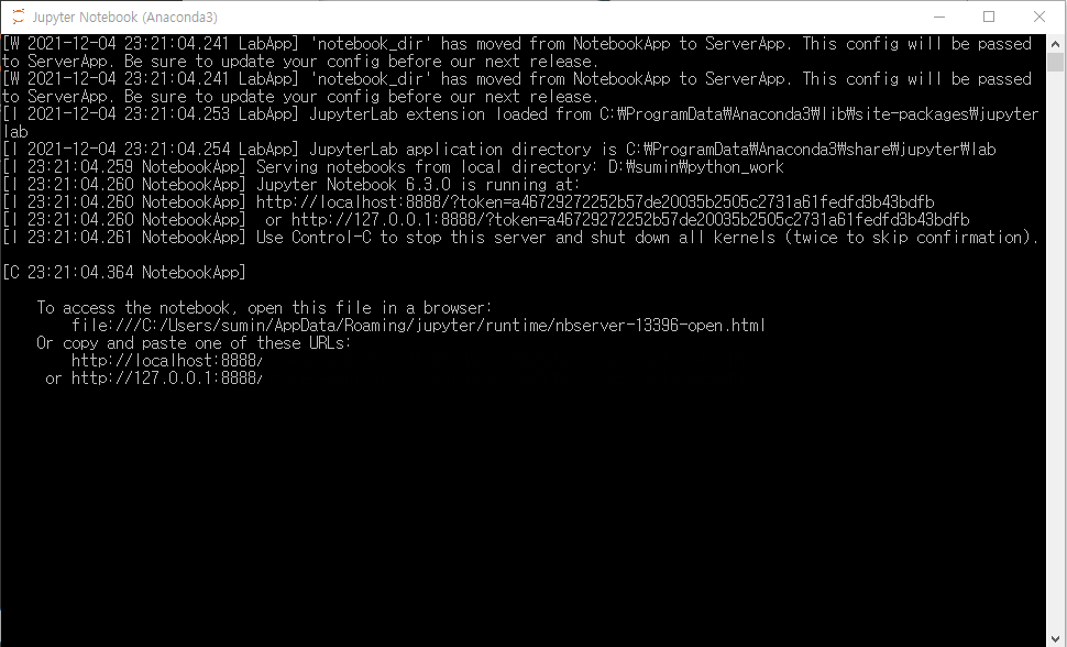 - 어래와 같은 화면이 뜨면 성공적으로 주피터 노트북이 설치된 것임