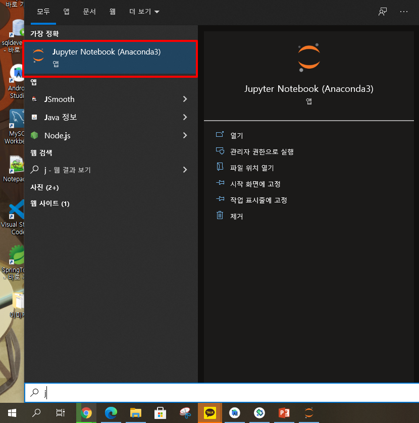 - 윈도우 버튼 클릭 > Jupyter Notebook 입력