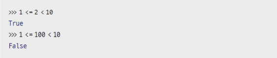 - 이 코드가 순서대로 실행되면 먼저 1 <= 100을 해석해 True로 반환되고, True는 1과 같으