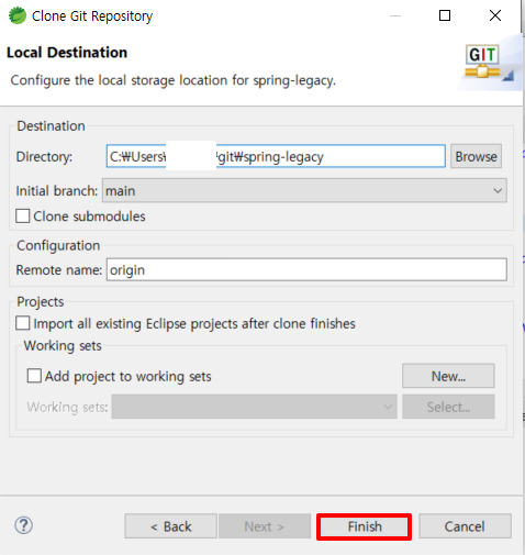 6. Next 선택 후 Finish