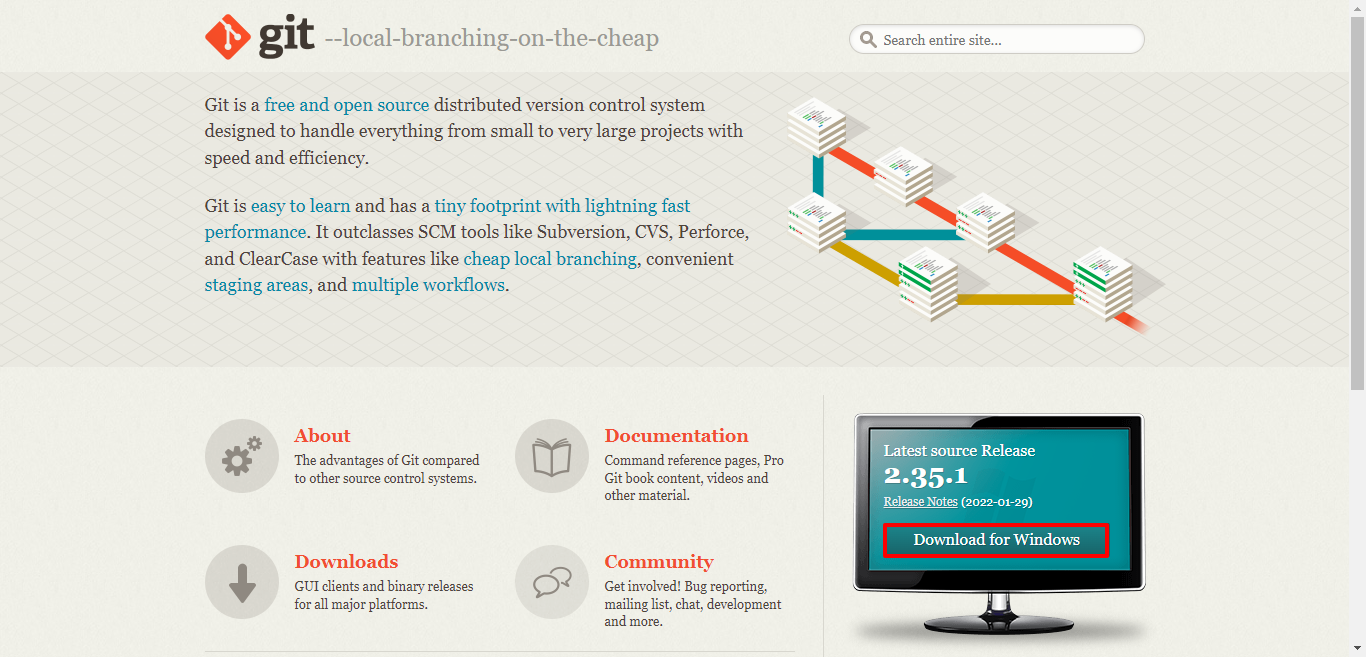 2. 홈페이지에서 다운로드 클릭 (현재 기준 2.35.1 버전)