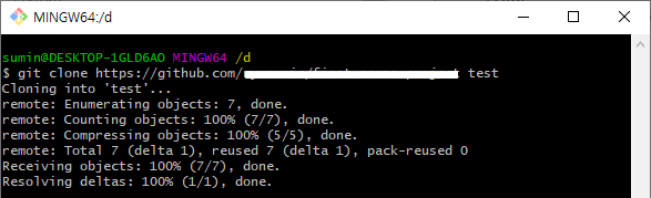 ▶ 만약 프로젝트 이름을 변경하고 싶으면 git clone url주소 프로젝트이름 으로 입력하면 됨!!