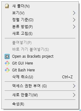 1. 파일을 저장하고 싶은 위치에 가서, 오른쪽을 클릭하여 Git Bash Here을 실행