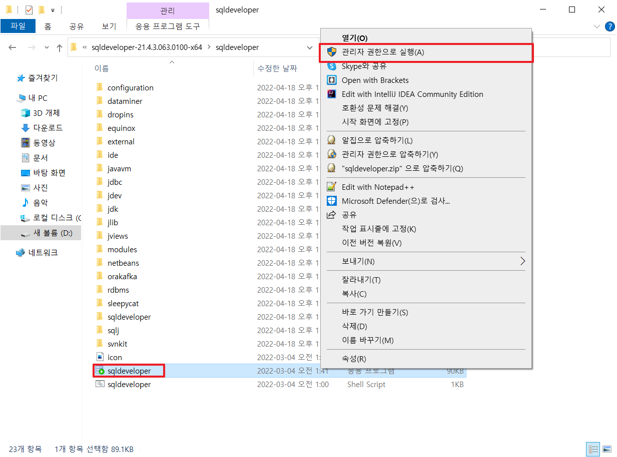 2-2. sqldeveloper 관리자 권한으로 실행