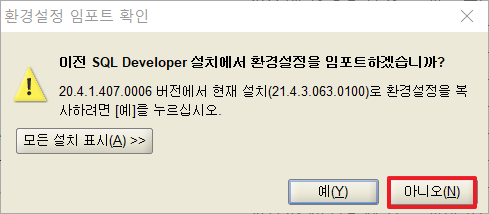 ⭐ 예전에 설치가 되어있었기 때문에 임포트가 뜨지만 아니요 클릭함!!